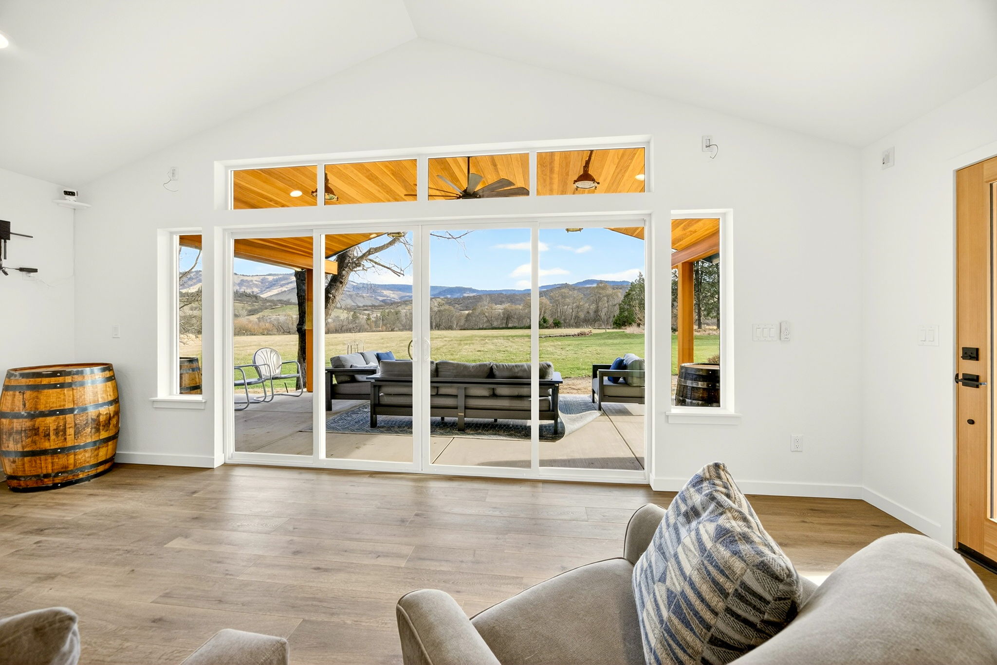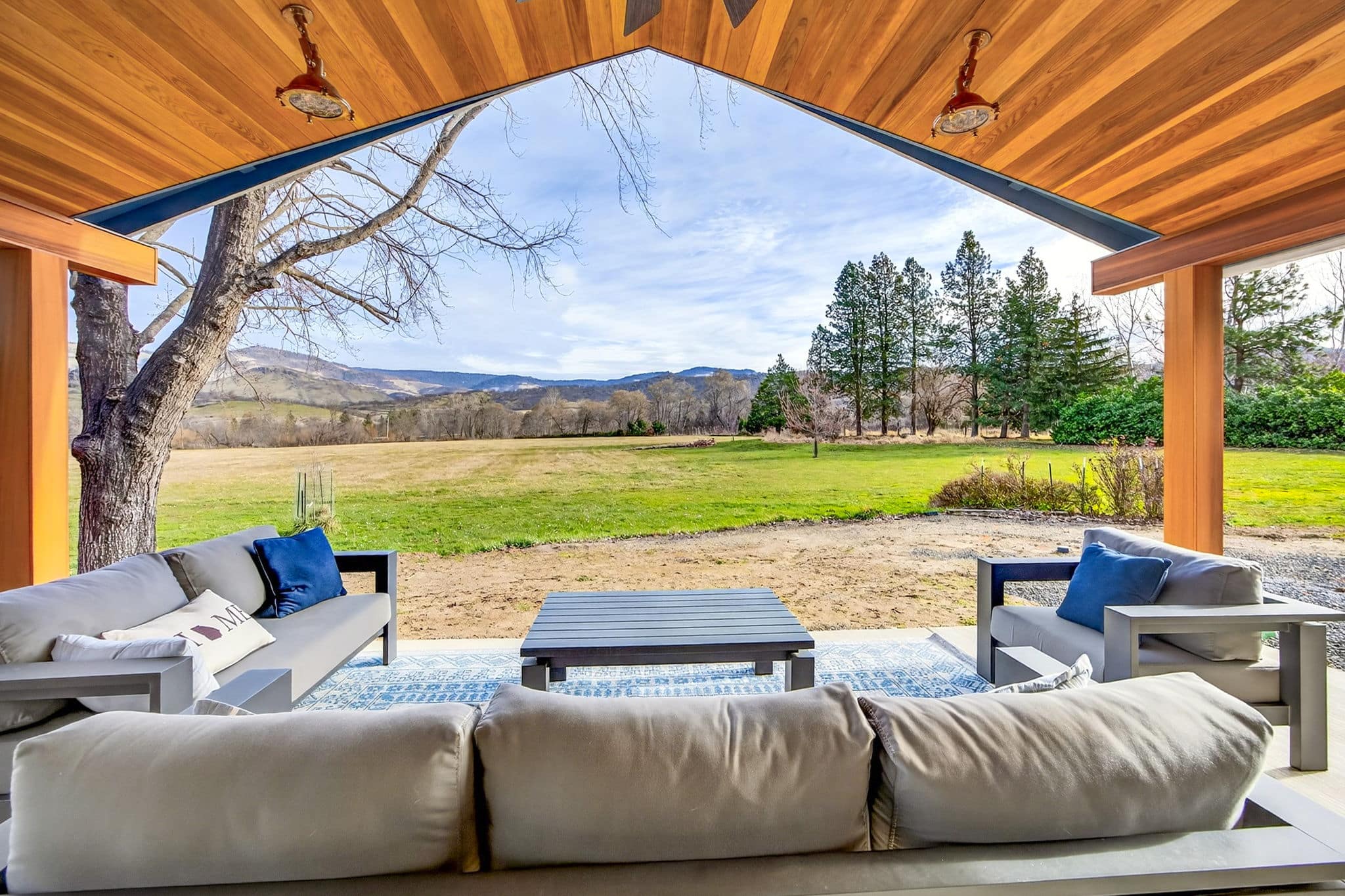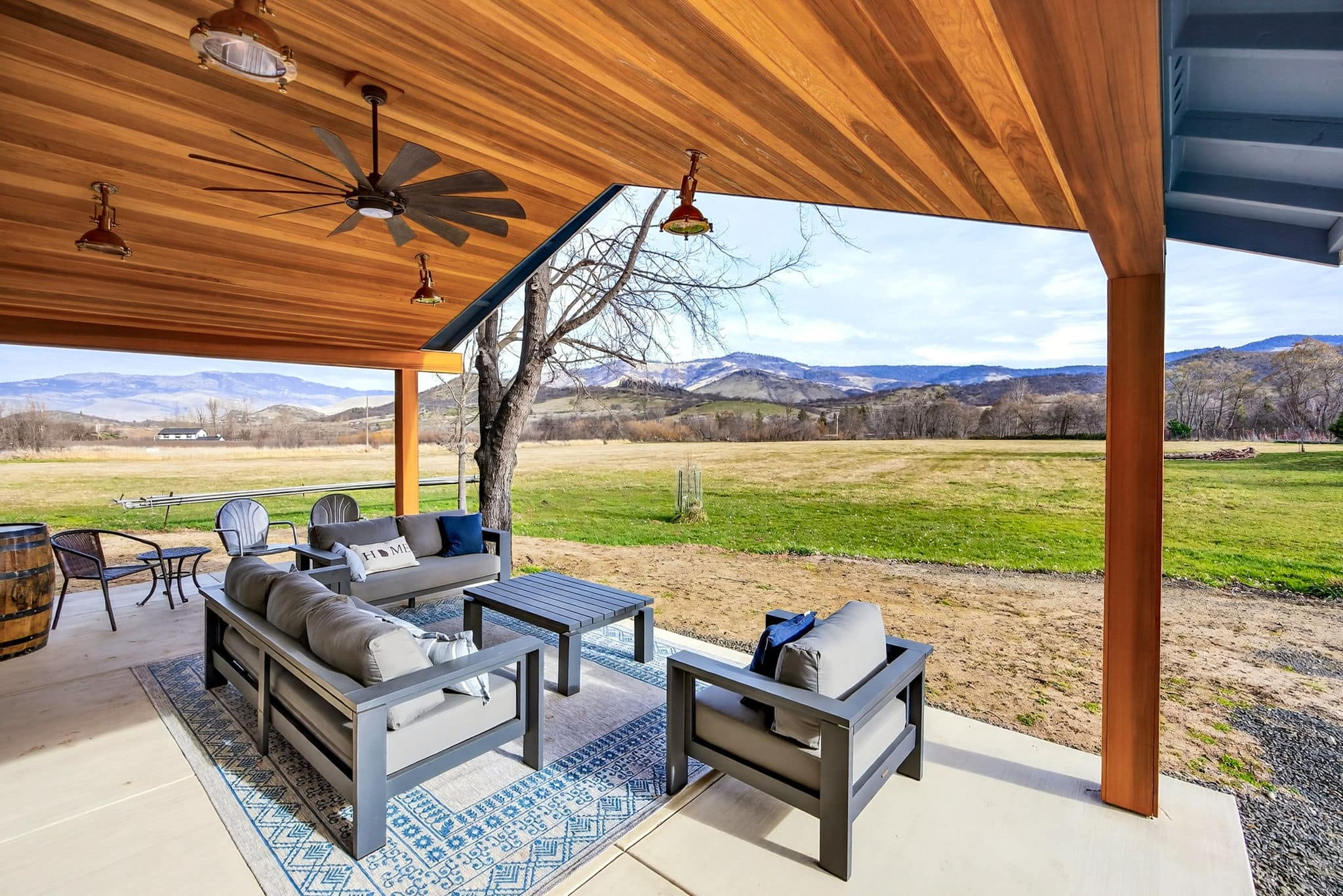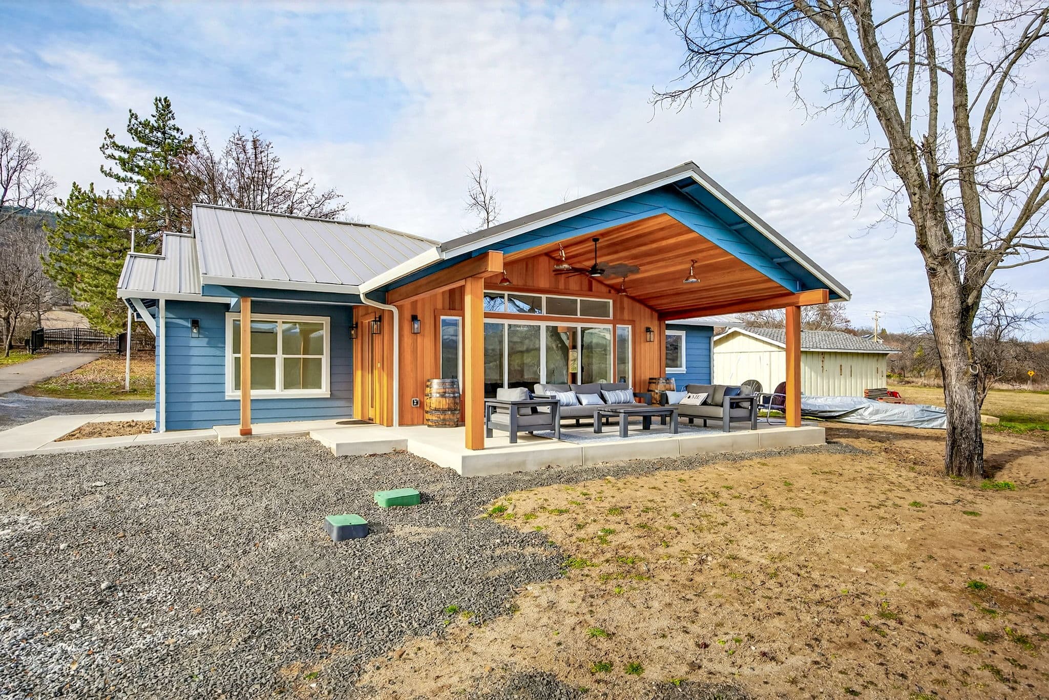 Small footprint, big presence. This thoughtfully designed 950 sq ft, 1 bed / 1 bath single-level ADU sits gracefully on a private 10-acre parcel, blending comfort with wide-open living. Anchored by an expansive covered patio, the home is perfectly oriented to capture sweeping meadow views, creating a seamless connection between indoor living and the natural landscape beyond.