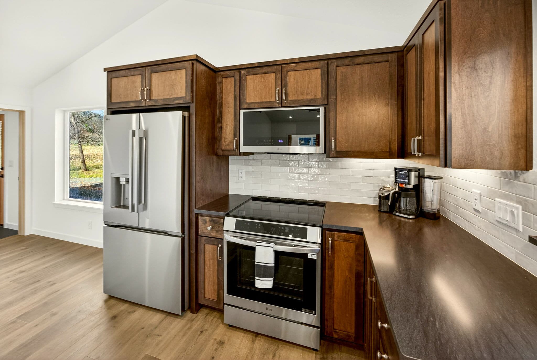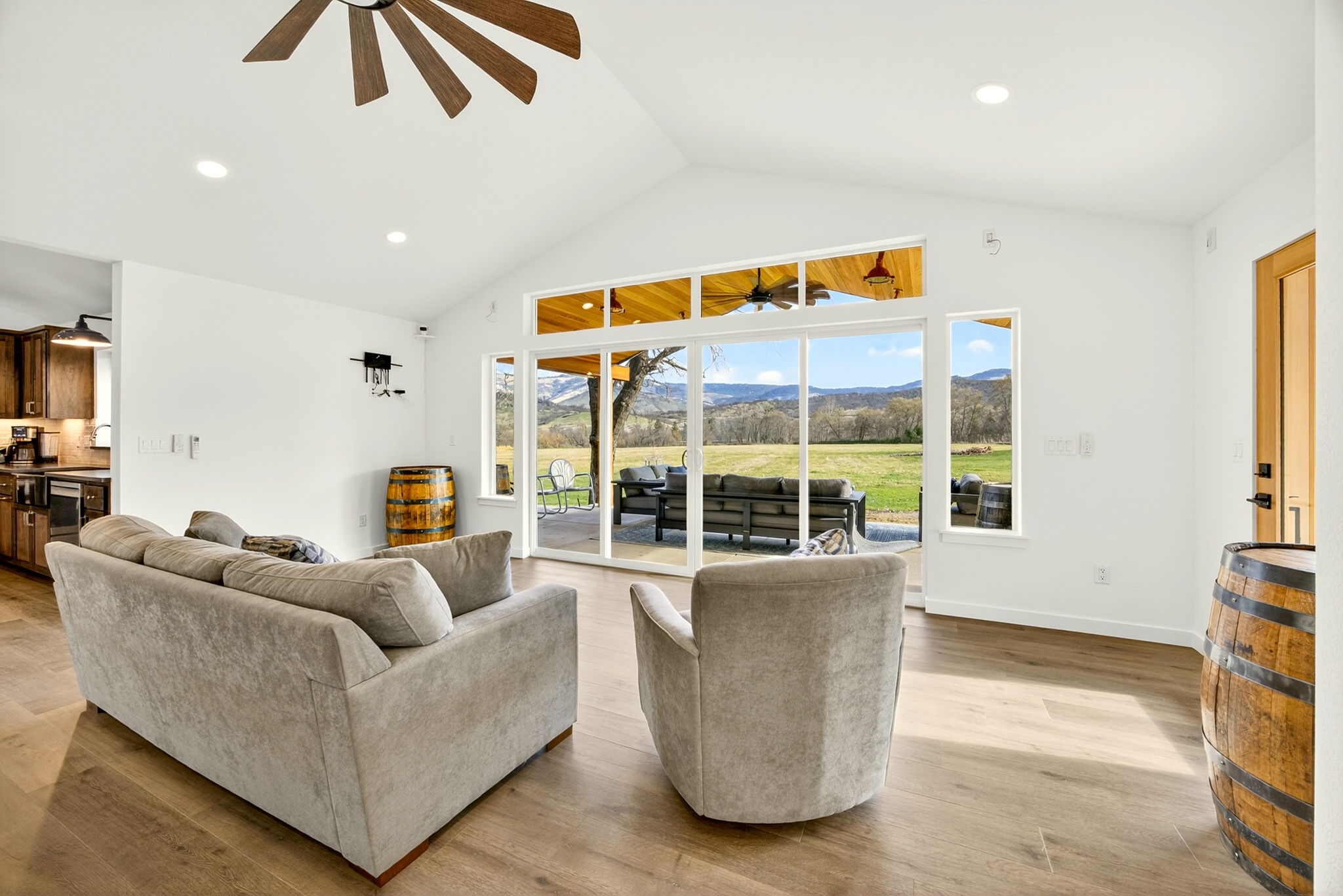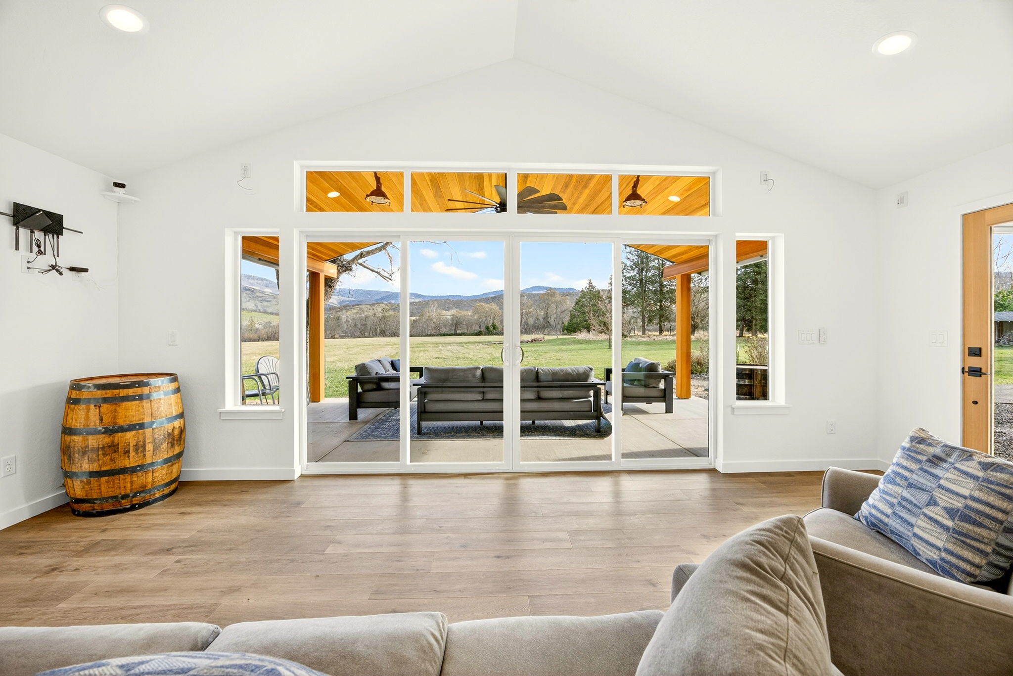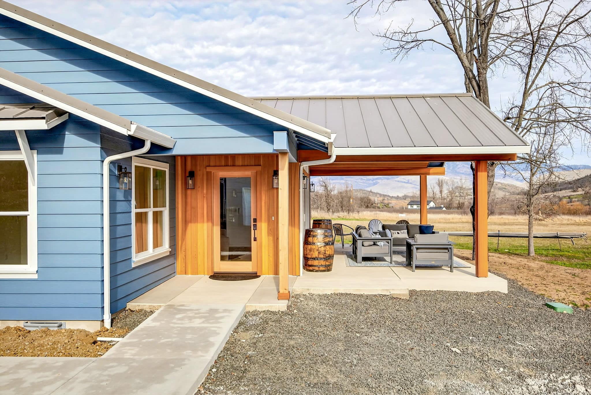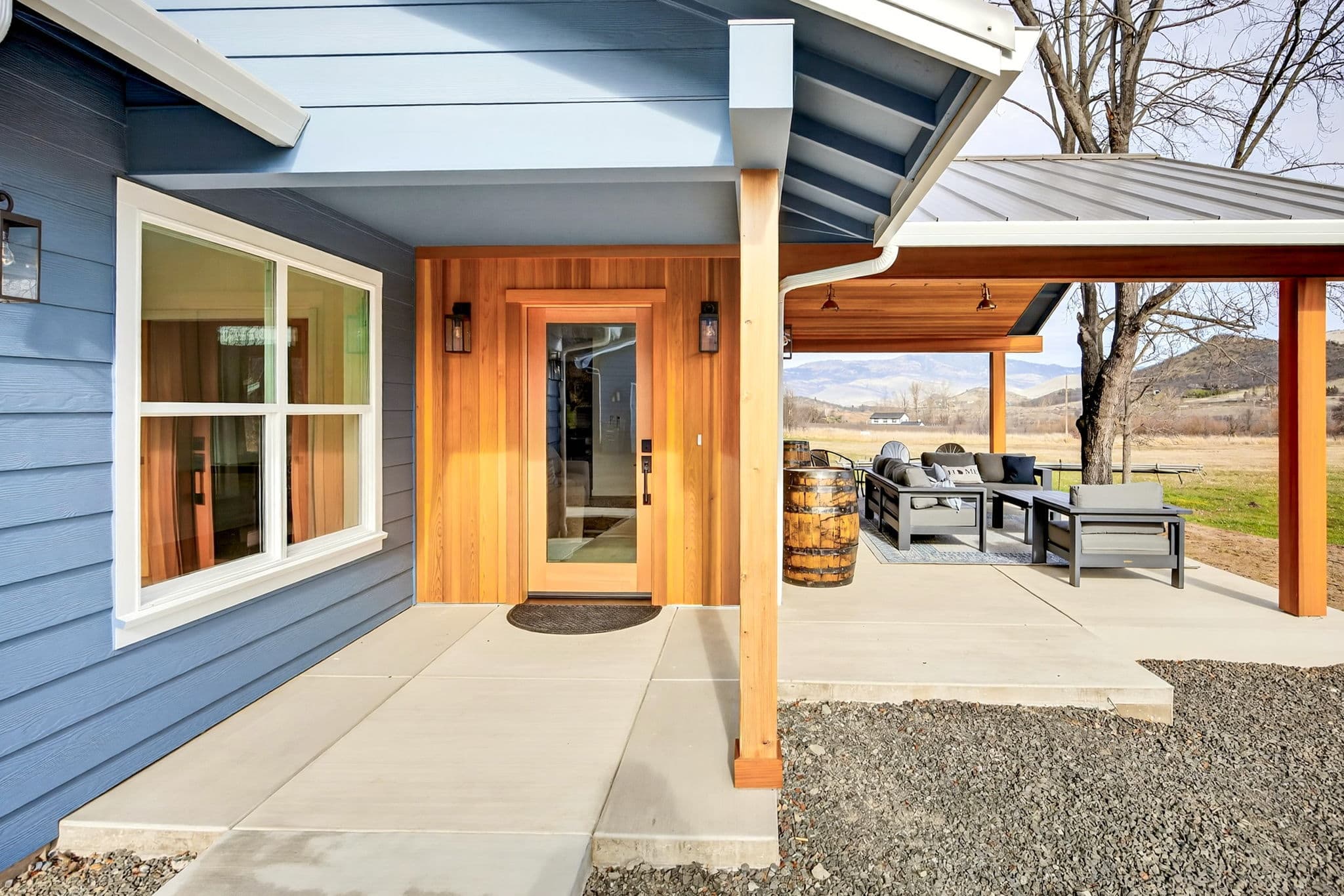 Small footprint, big presence. This thoughtfully designed 950 sq ft, 1 bed / 1 bath single-level ADU sits gracefully on a private 10-acre parcel, blending comfort with wide-open living. Anchored by an expansive covered patio, the home is perfectly oriented to capture sweeping meadow views, creating a seamless connection between indoor living and the natural landscape beyond.