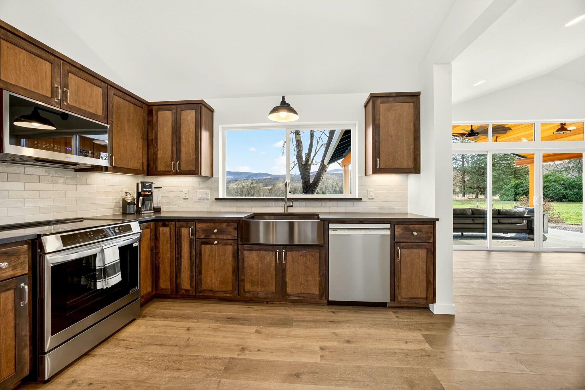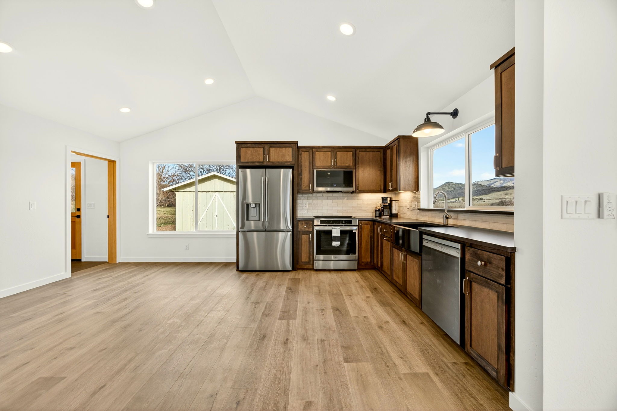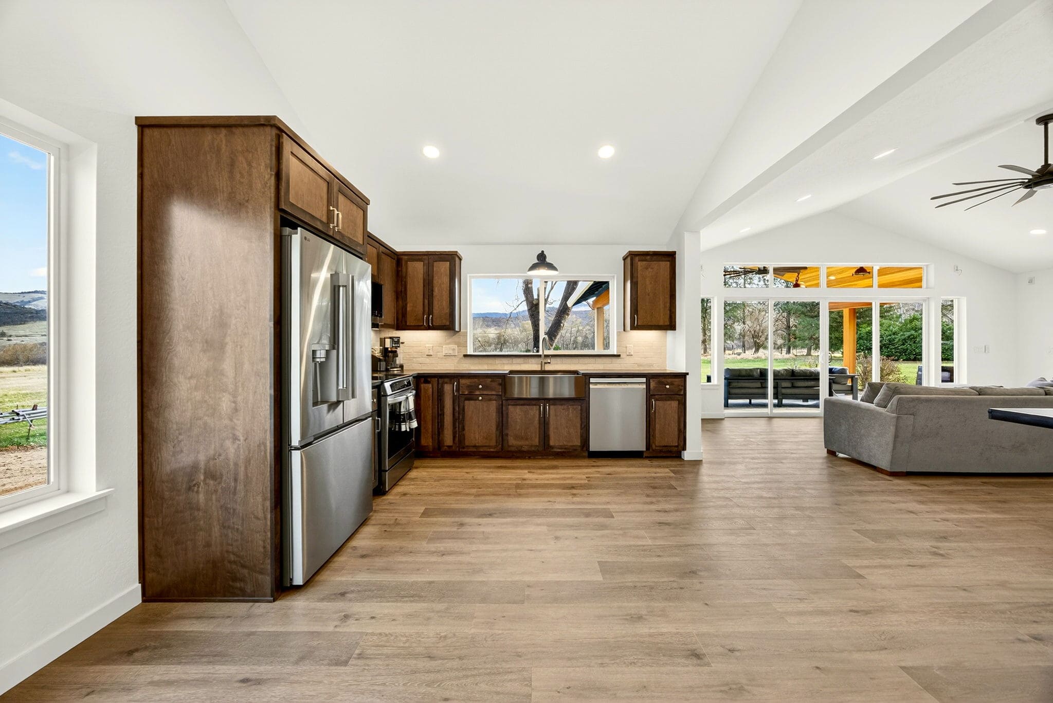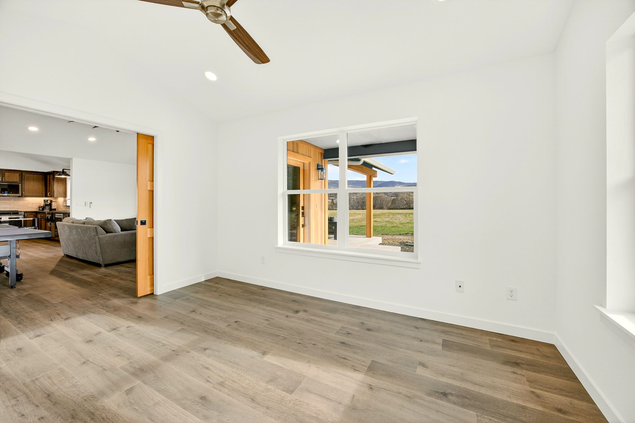 Small footprint, big presence. This thoughtfully designed 950 sq ft, 1 bed / 1 bath single-level ADU sits gracefully on a private 10-acre parcel, blending comfort with wide-open living. Anchored by an expansive covered patio, the home is perfectly oriented to capture sweeping meadow views, creating a seamless connection between indoor living and the natural landscape beyond.