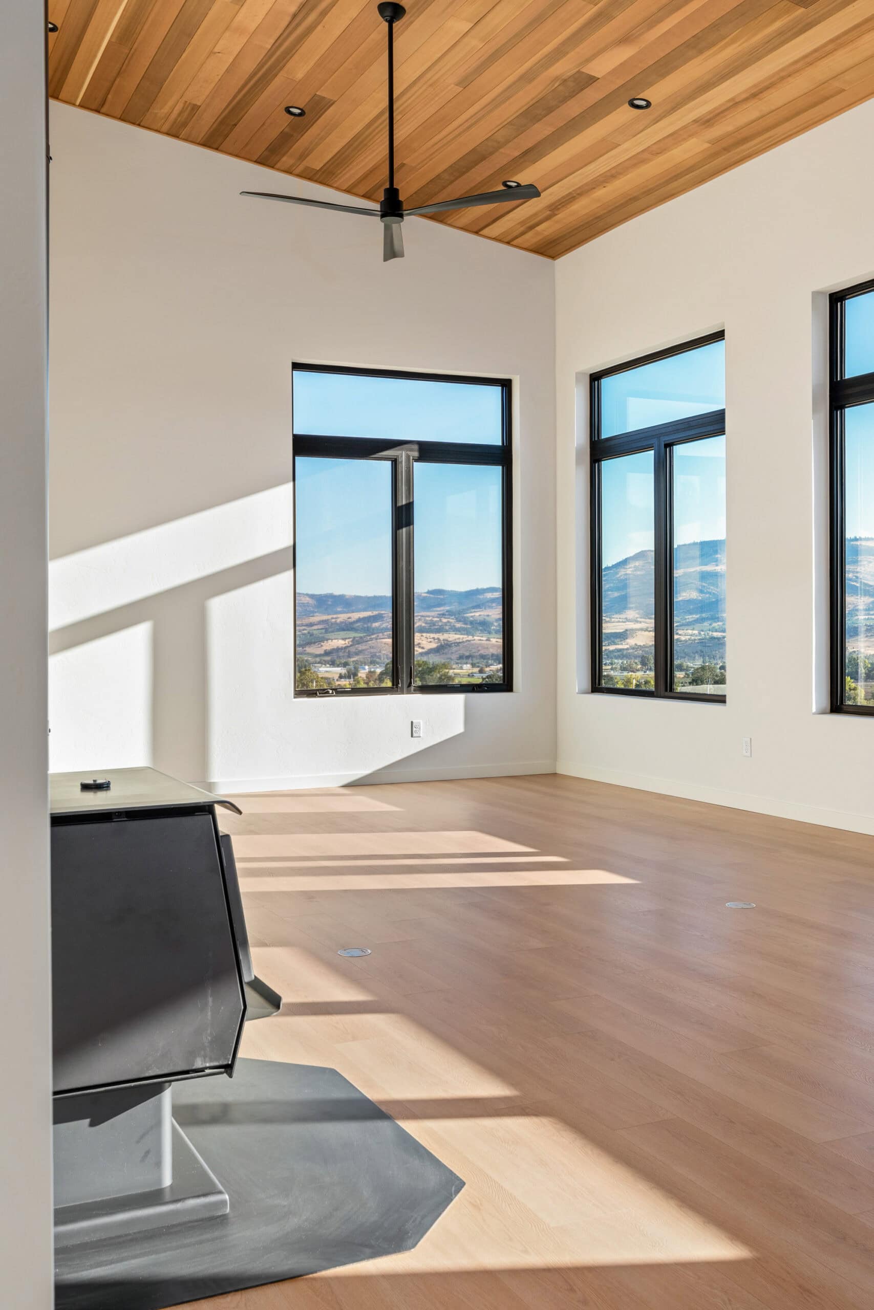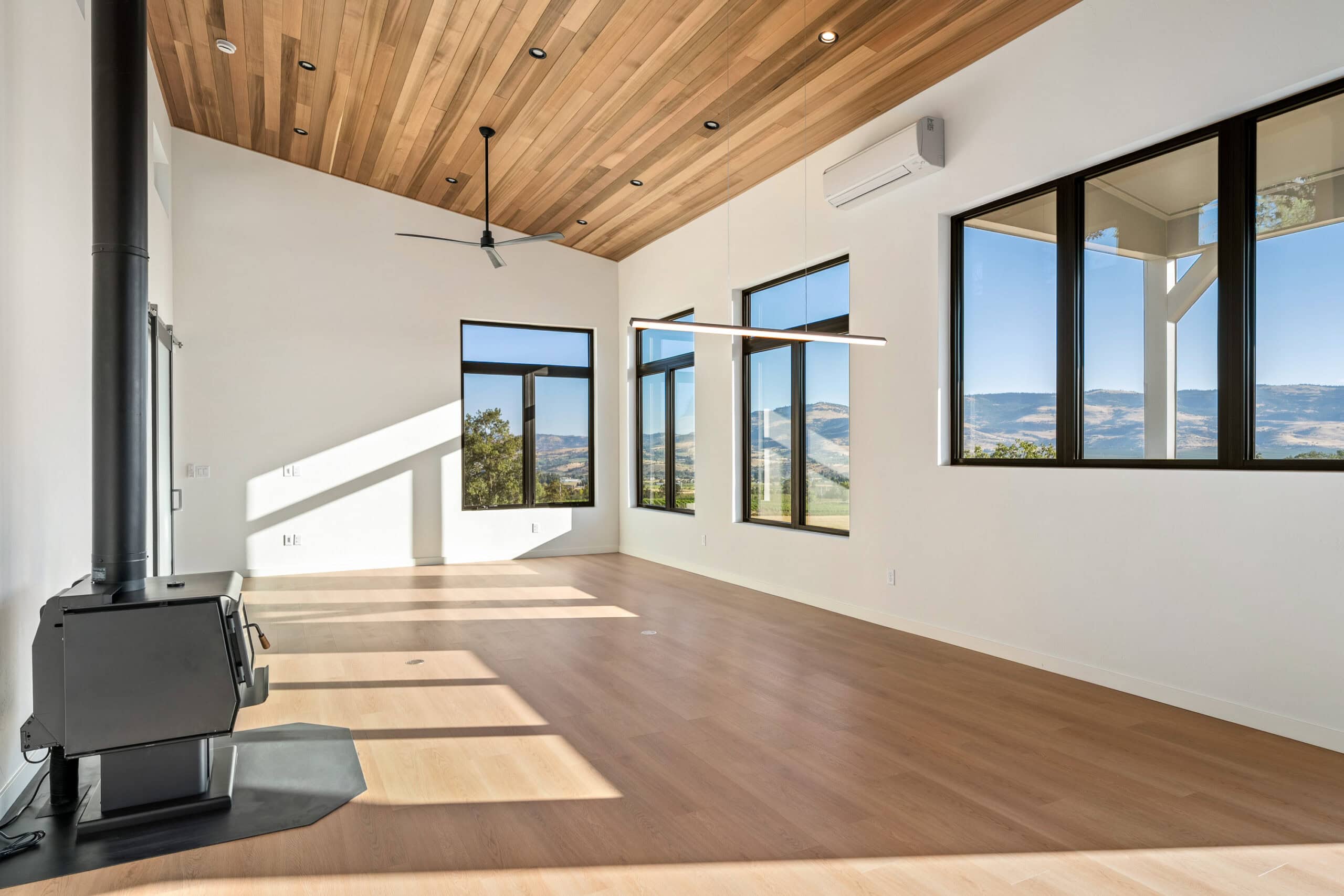 Set on 40 private acres, this striking modern home was thoughtfully designed to embrace its breathtaking surroundings. Expansive windows throughout the home frame sweeping views of the rolling hills, filling the interior with natural light and creating a seamless connection to the landscape. A generous covered deck offers the perfect place to relax, entertain, and take in the scenery year-round.